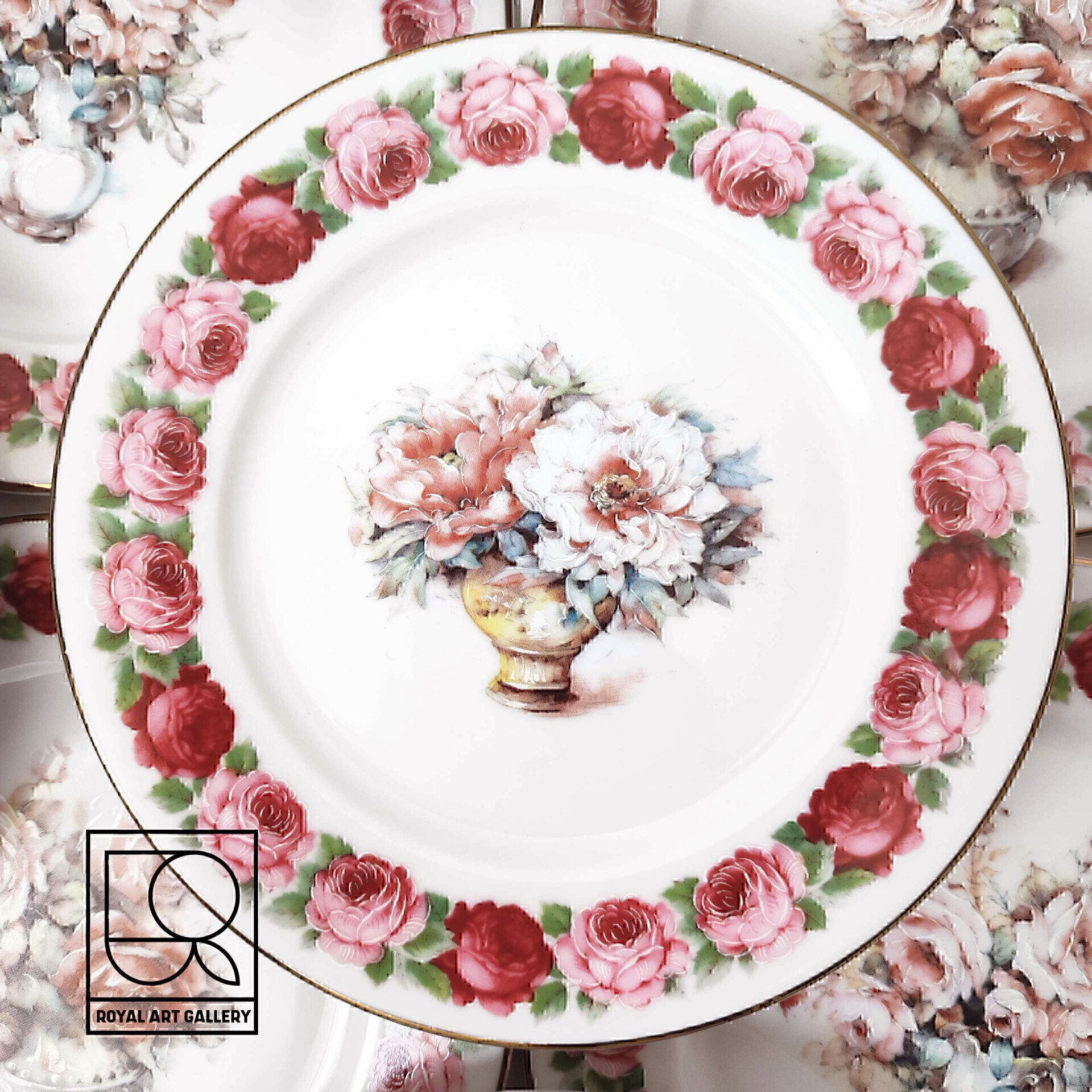 بشقاب حاشیه گل رز طرح گل و گلدان شماره 2