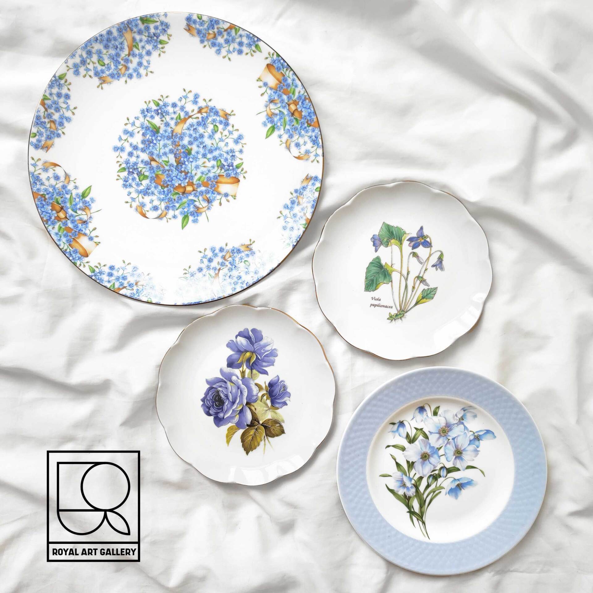 ست بشقاب گل آبی رنگی