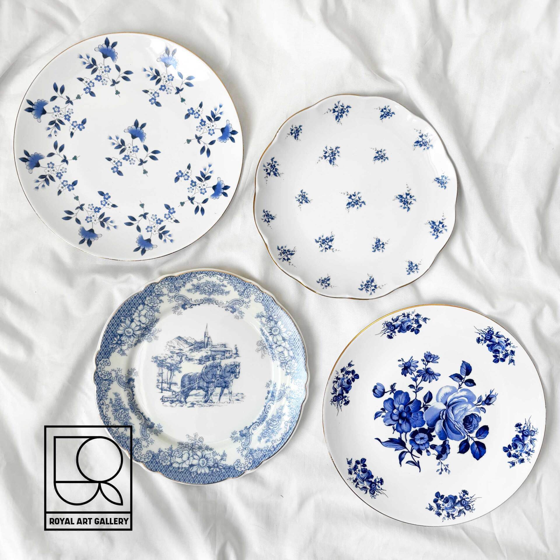 ست بشقاب گل آبی