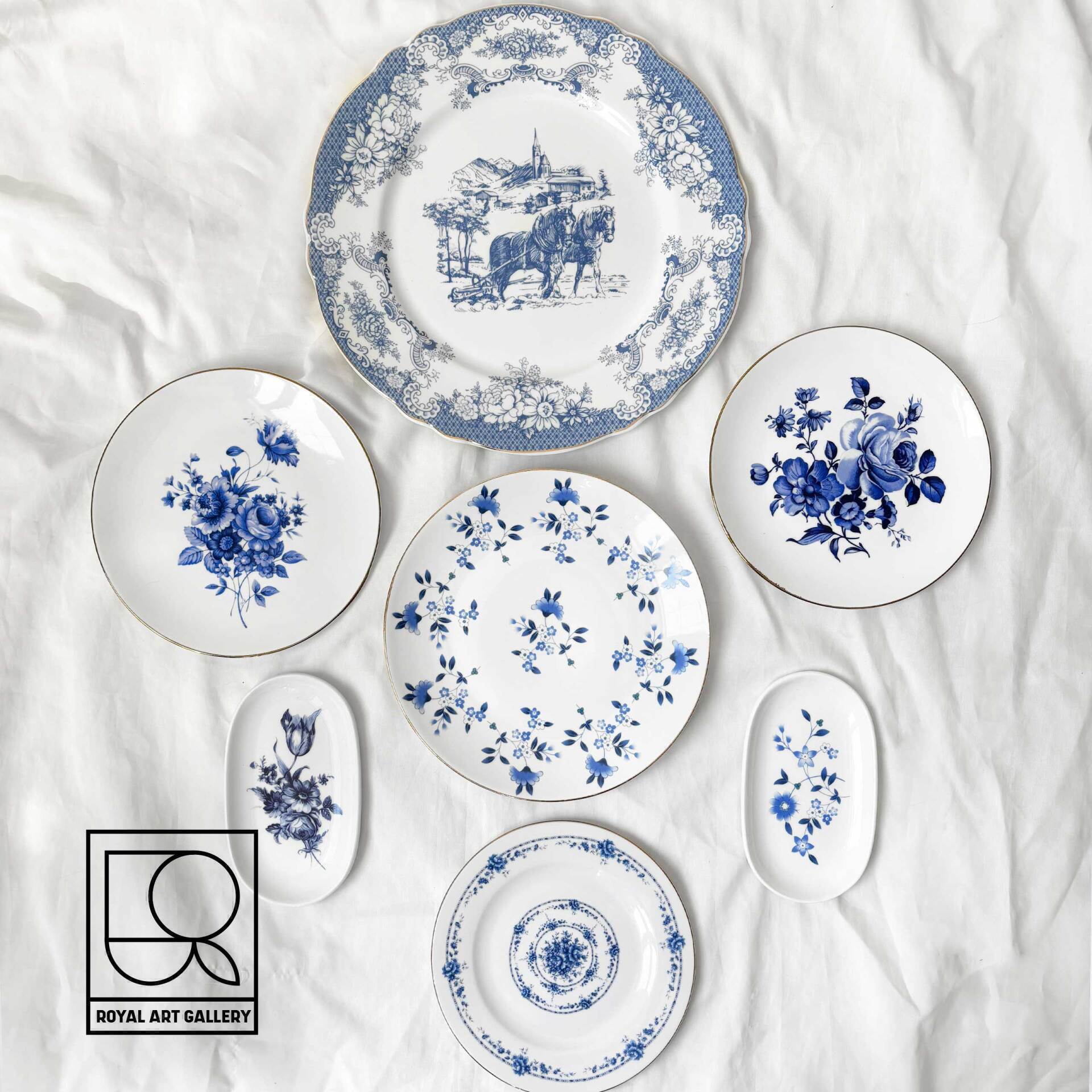 ست بشقاب گل آبی