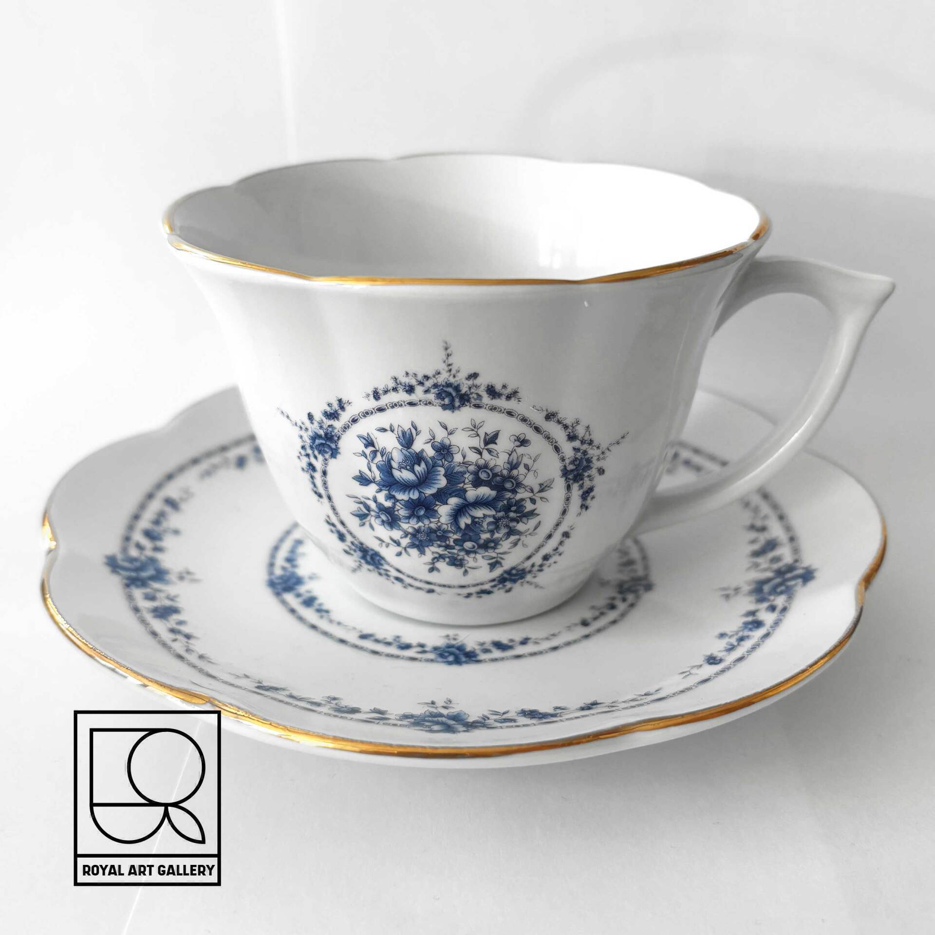 فنجان نعلبکی کنگره ای گل ریز آبی درجه 2 (چند تا از فنجان ها و نعلبکی ها لک دارند)